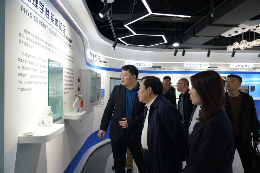 本次考察中,陳代陸副市長參觀了盟創納米公司展廳,詳細了解了公司產品性能及應用領域,并在產品物理性能展示區親自體驗了納米氣凝膠的神奇特性。