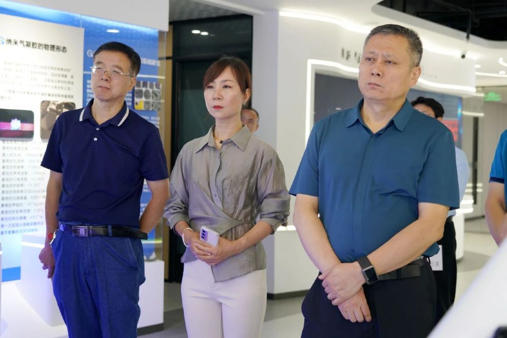 張君對本次到訪的各位領導表示熱烈歡迎,并陪同參觀介紹了公司和科技成果展廳。在參觀過程中,各位領導對公司在納米新材料行業的突破性成果、國際領先的核心技術以及行業標準貢獻和研發成果給予了充分肯定。