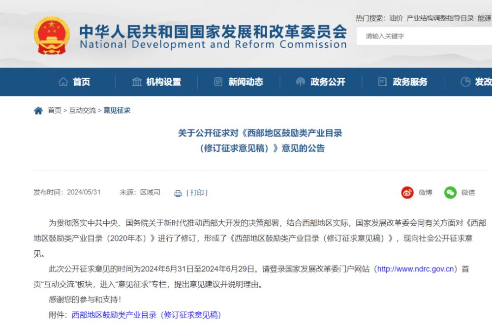 2024年5月31日,國家發(fā)改委發(fā)布了關(guān)于公開征求對《西部地區(qū)鼓勵類產(chǎn)業(yè)目錄(修訂征求意見稿)》(下稱“目錄”)意見的公告,其中涉及氣凝膠相關(guān)內(nèi)容。
