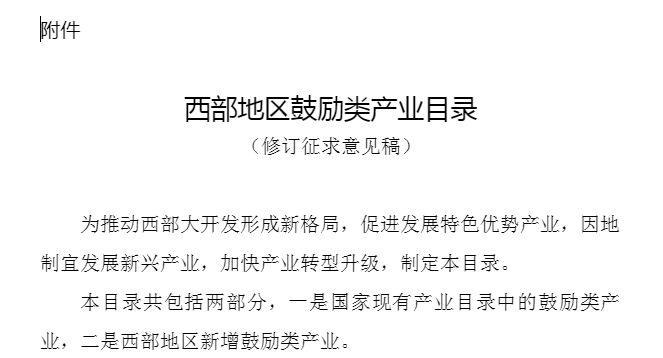 西部地區(qū)新增鼓勵類產(chǎn)業(yè)